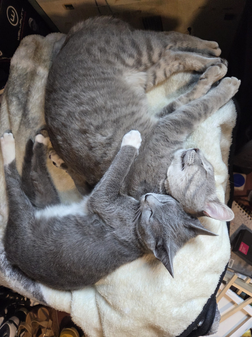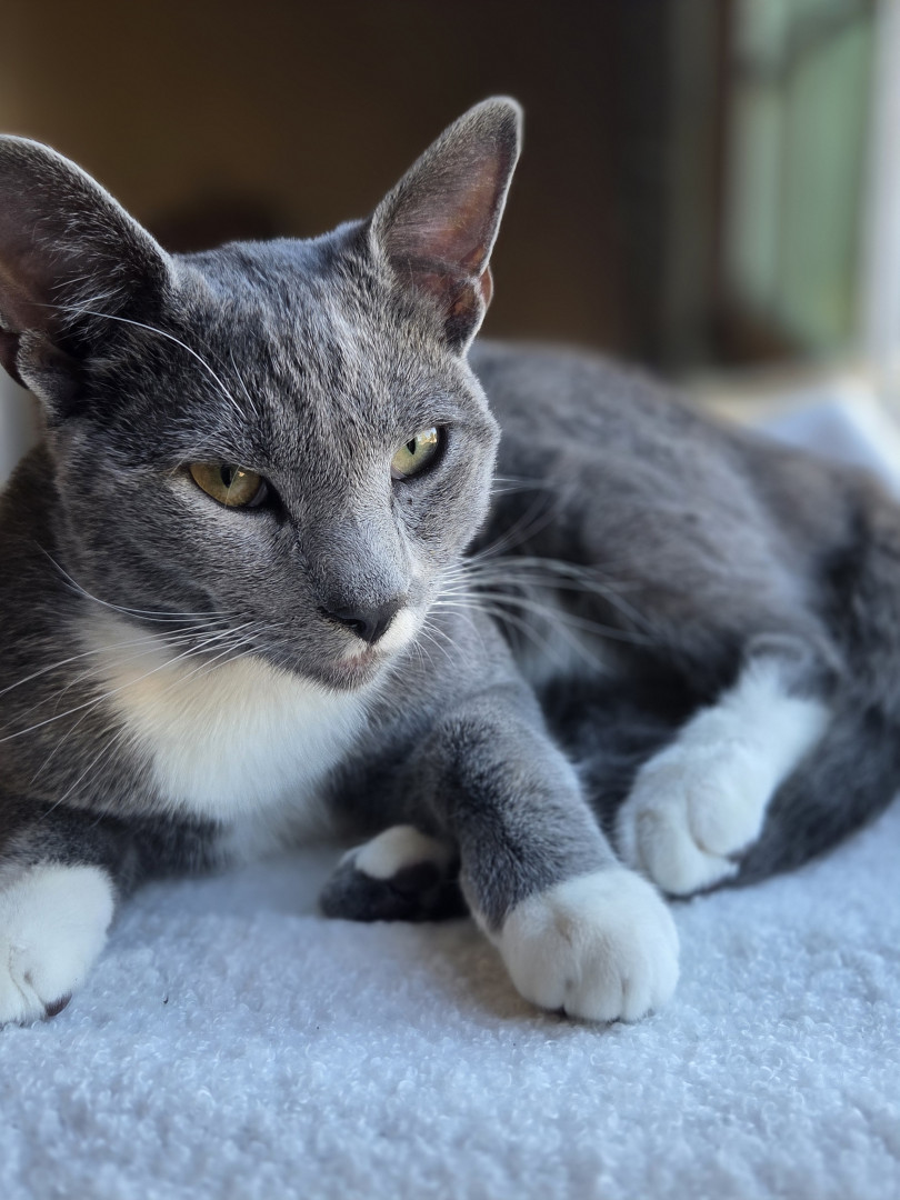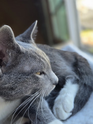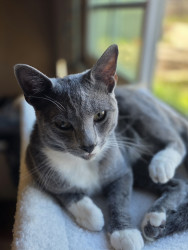 Lil grey the baby of all my cats which we have our actual cat olly the oldest and we have big grey and lil grey. Adopted them from outside or from a friend or family. Lil grey should be the cover of America's Favorite because he loves attention, he has a unique face(curiosity look always) He is brave with the other cats and he is so lovable and cute. He demands attention. He's a handsome lil guy. And he probably wouldn't have survived that day when my son found him in the park on that hot day.
