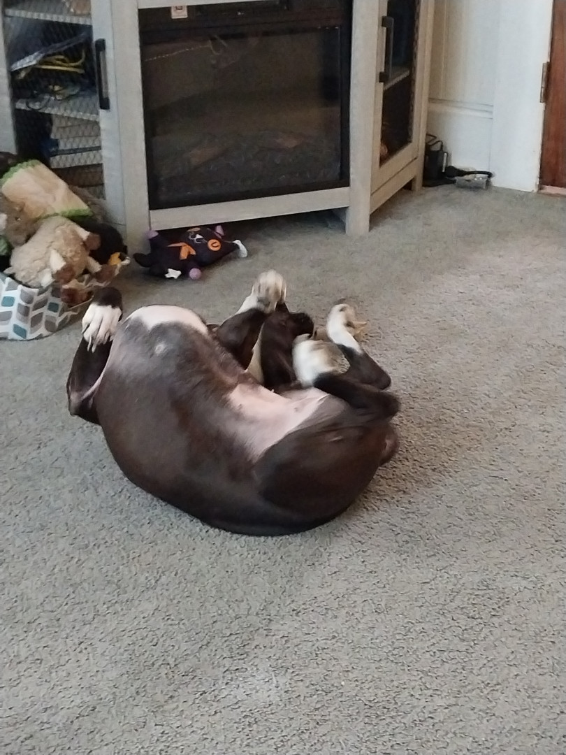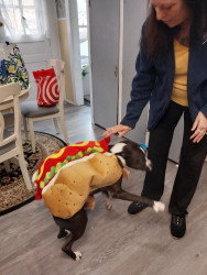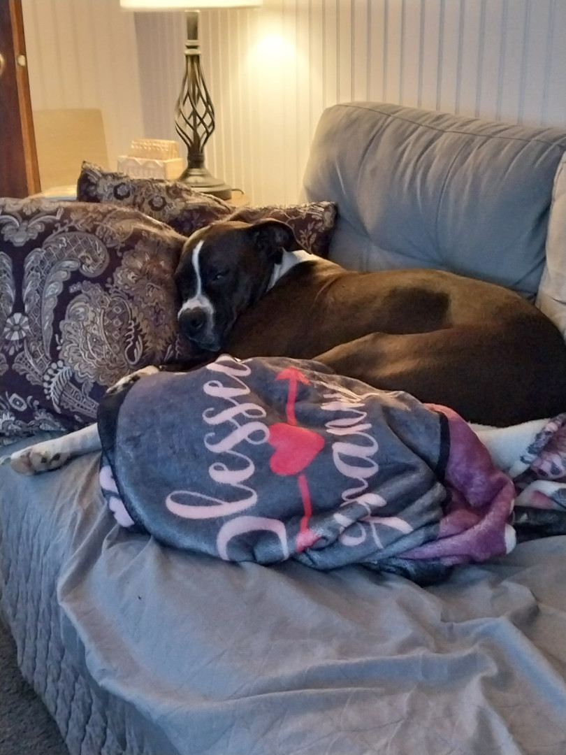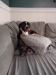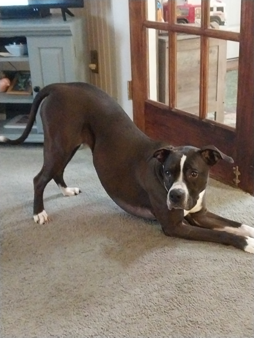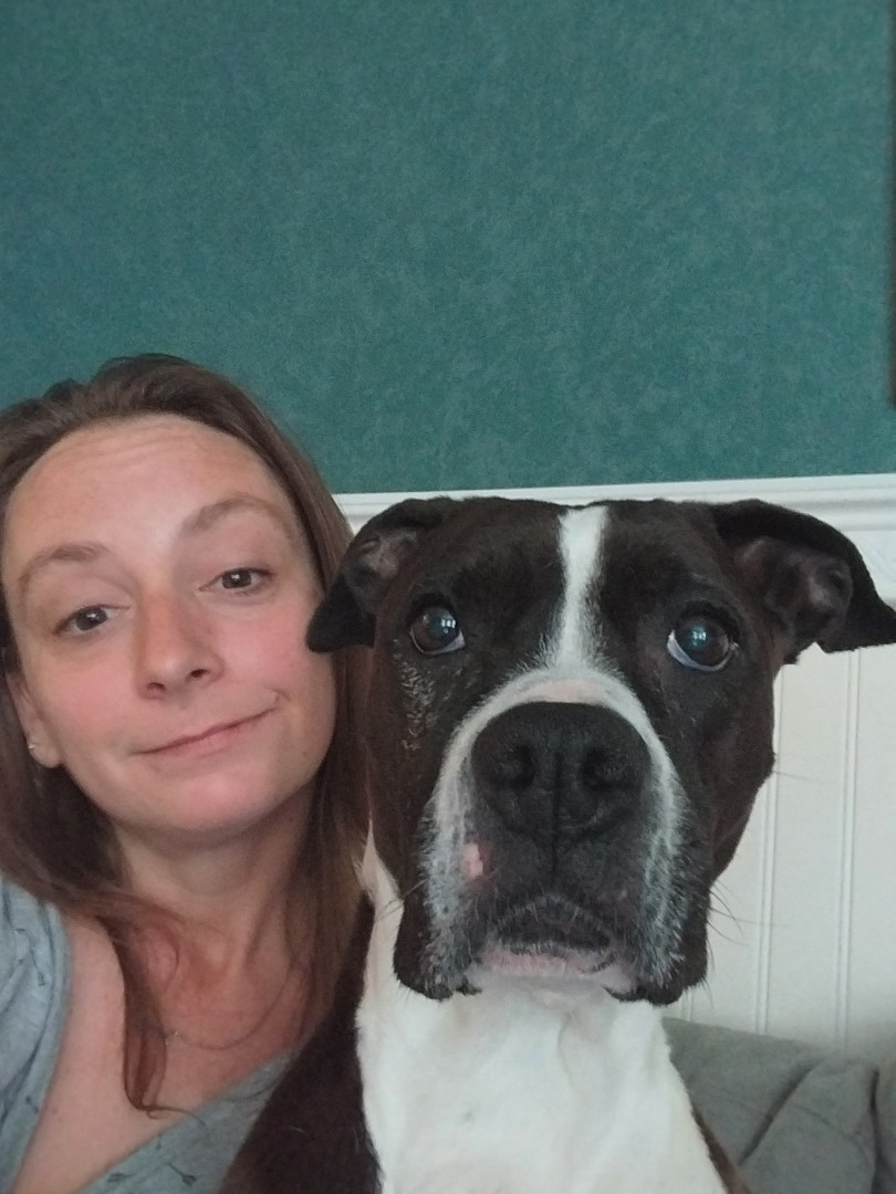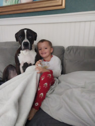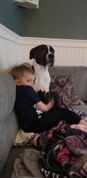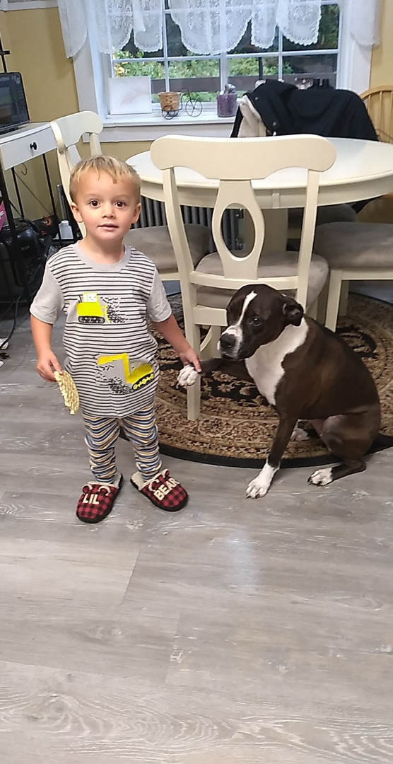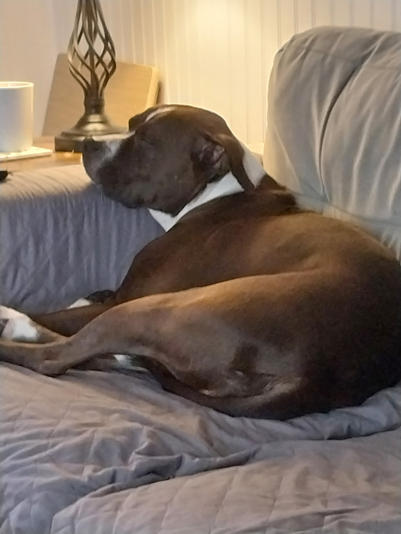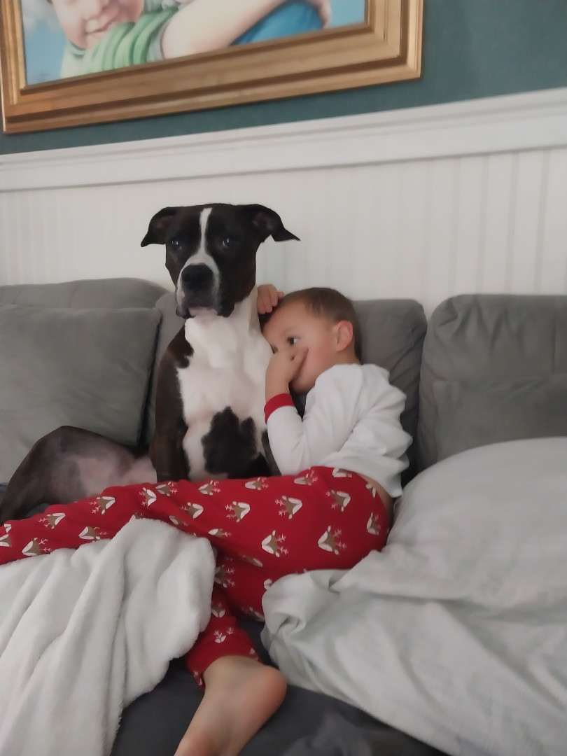 She came from living on the streets and losing her puppies, being abused, and she still is the sweetest animal I've ever met. She's very playful , but wouldn't hurt a fly. She is definitely one of a kind. We love our girl