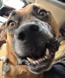 Shes one of a kind so adorable sweet and loving .she loves going on road trips shes loves to go camping and outher spashal road trips with us .shes sutch a sweetheart she knows when im sad she awoyce has a way to chear me us she also has touched the hearts of strangers in public