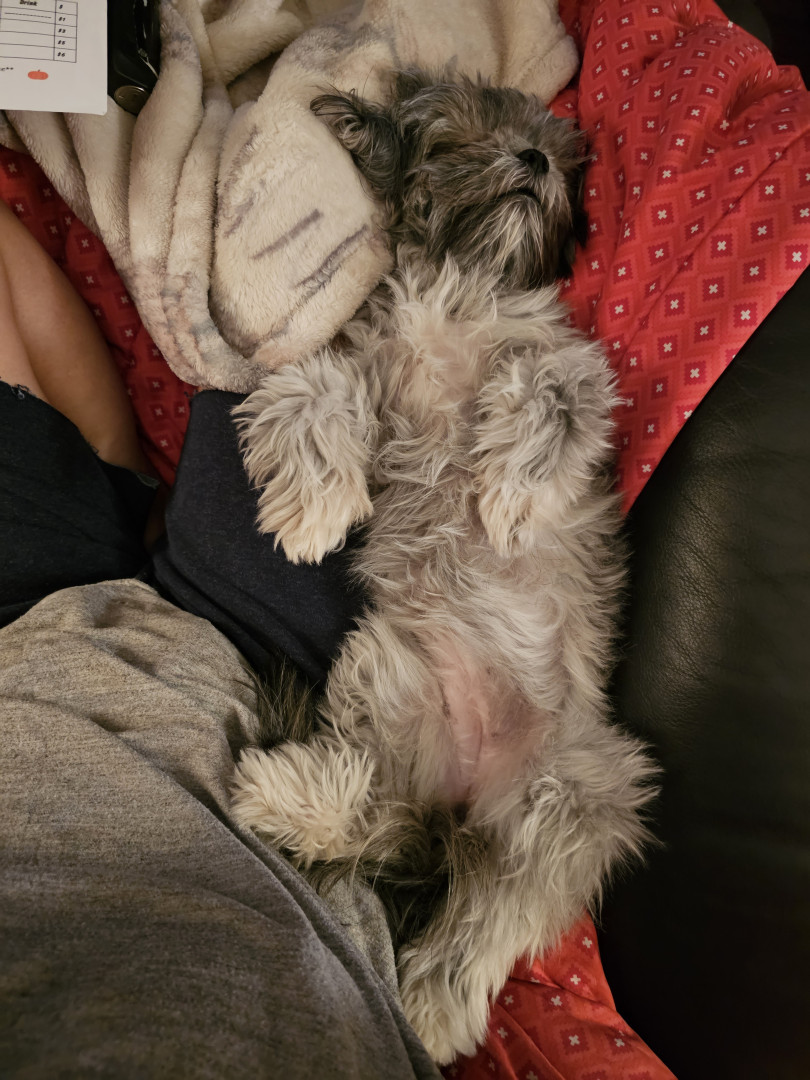 She might not be energy single persons favorite part in America, but she always draws attention from anyone that sees her, young and old. She can be very sweet and loving and the next minute have the zoomies Ive only ever seen a shih tzu do... and with their short legs go SO fast. She is forever a toddler child to me and she makes ppl smile.