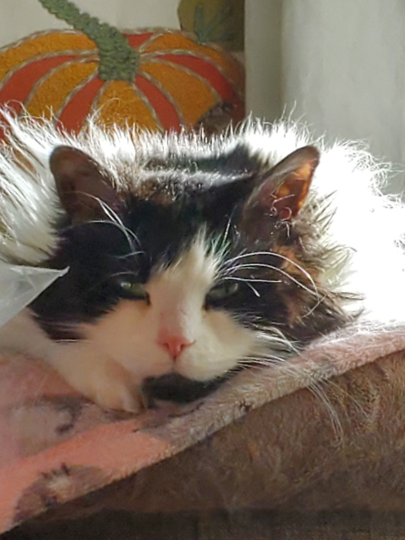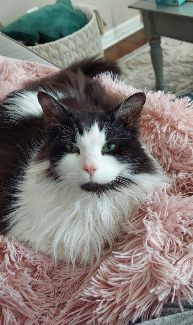 She's so pretty, silky soft, chatty and loves her family so much. She brings so much joy to us and we can't imagine our lives without her. We weren't looking to adopt but were visiting our local shelter and her cage was left open. I went to say hi to her and close it, and ended up with her in my lap purring, love at first sight. That was 10 years ago!
