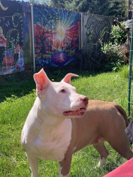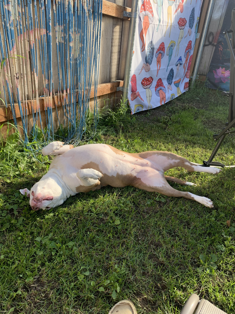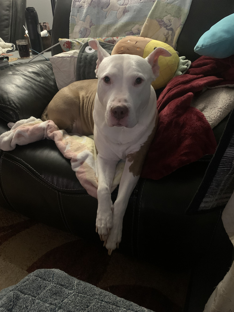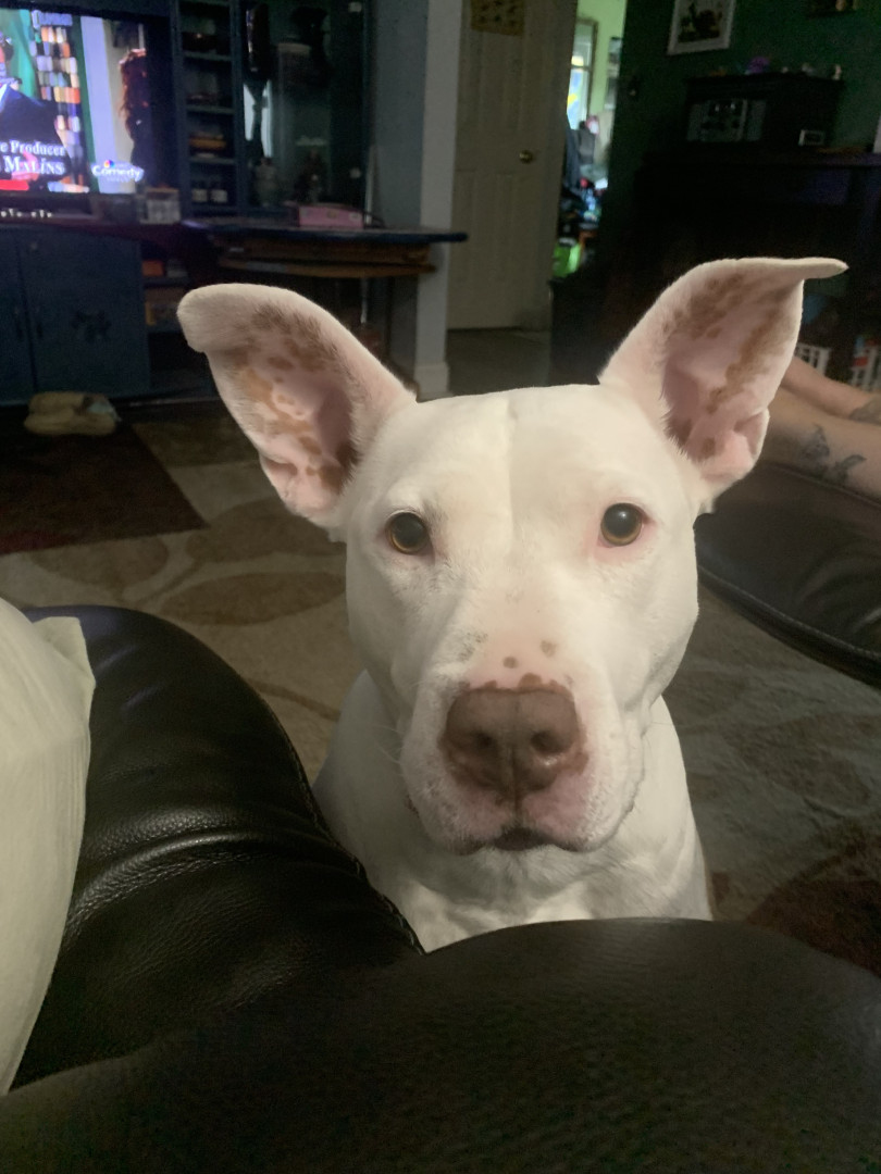Not only is she a heckin protector from the evil mailman she’s the biggest snuggler. Pickle is her own dog, she does what she wants, when she wants. She likes to give kisses n feels left out if your kissin without her so we have to share kisses.