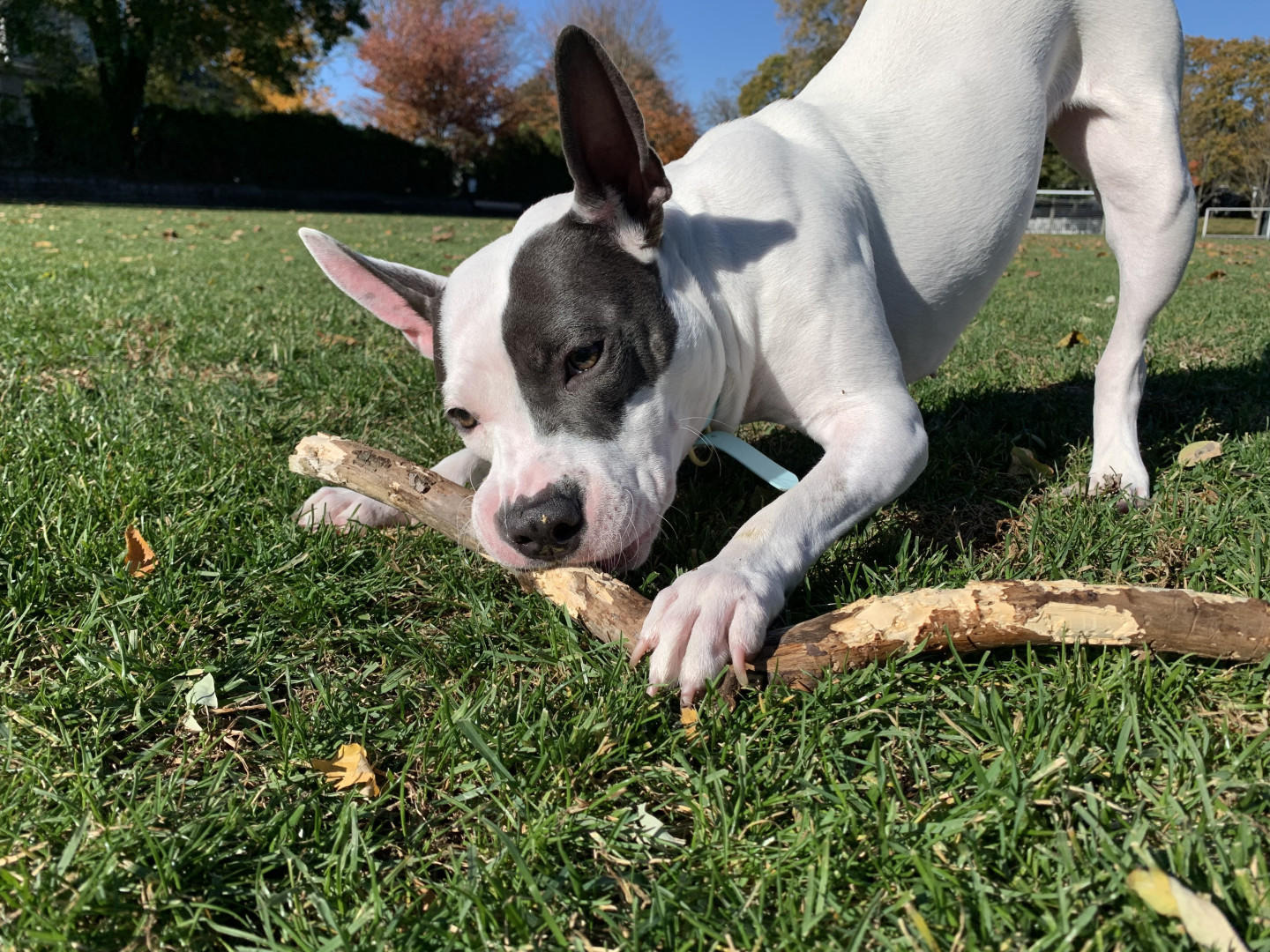 Sticks and soccer balls are her ultimate favorite she cant focus on anything else if she sees one. Her favorite treat has to be her tough chews or sweet potato treats. She loves fruits, veggies and ice cubes too!