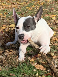 She’s the sweetest pup. Say hi tans she’ll be your best friend. Always wants to play outside with a ball or stick, but cuddles you with love