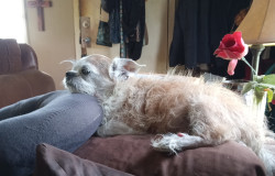 13 years old. Mellow. Doesn't bark. Loves everyone and everyone loves her. Smart. The cutest of cute.