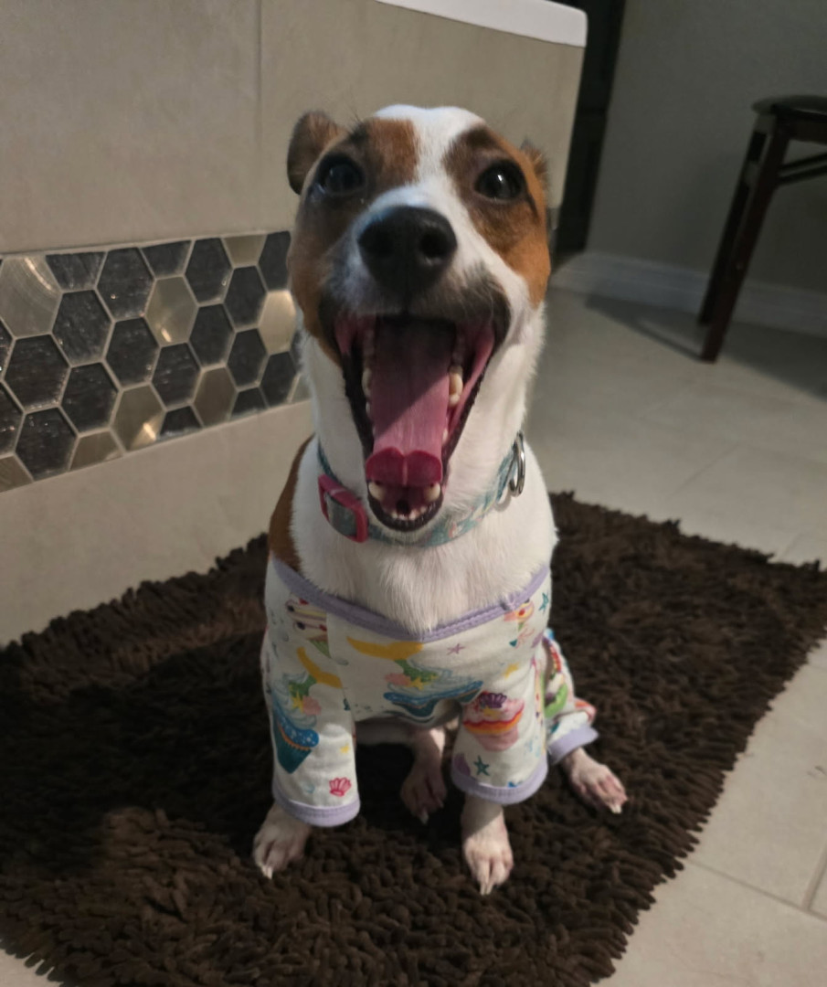 Lily is 15 pounds she is a small jack russel terrior,jumpy and loves to explore outside alot. She loves spending time with family.