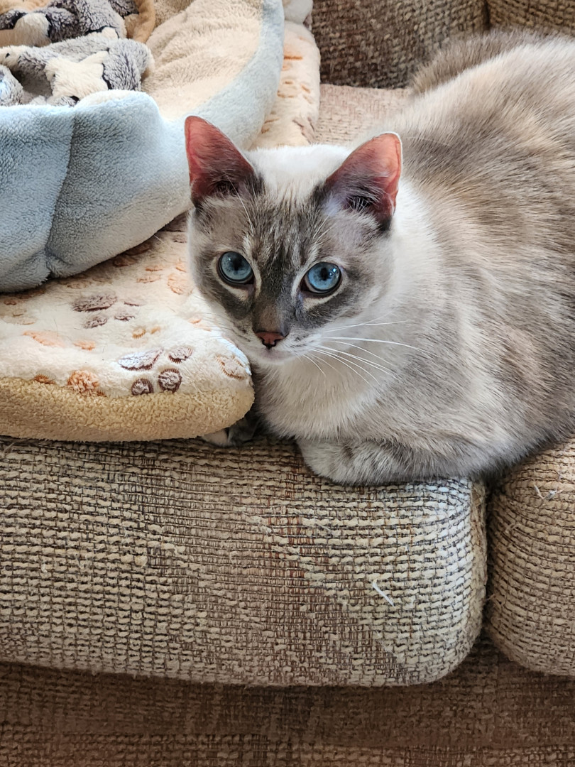 How could anyone not love her beautiful blue eyes and unique markings? Hard to believe someone just left her in the middle of a highway..