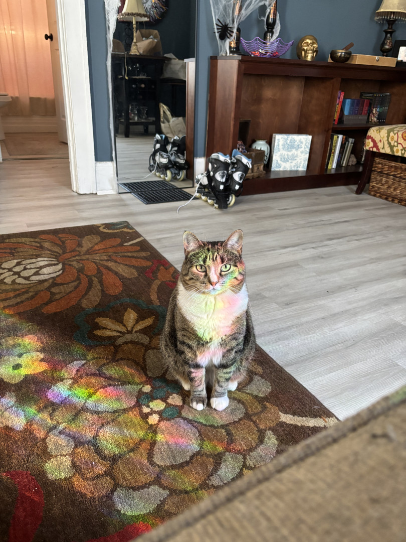 She is a princess. She likes pets when you follow her to where she wants it. Likes to pose for pictures and look at herself in the mirror.