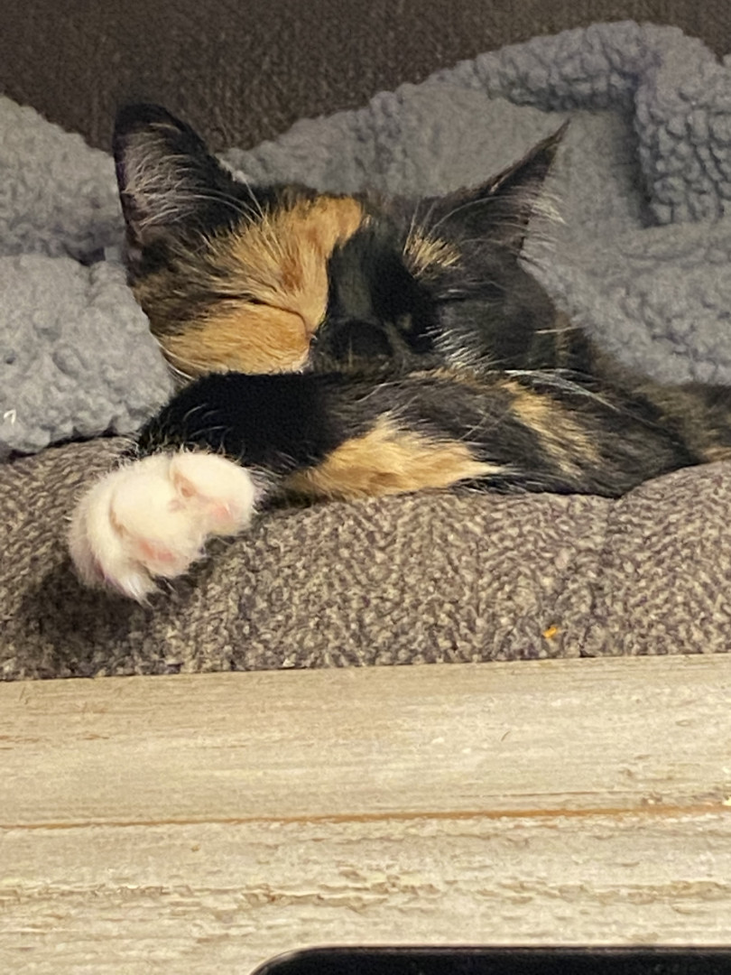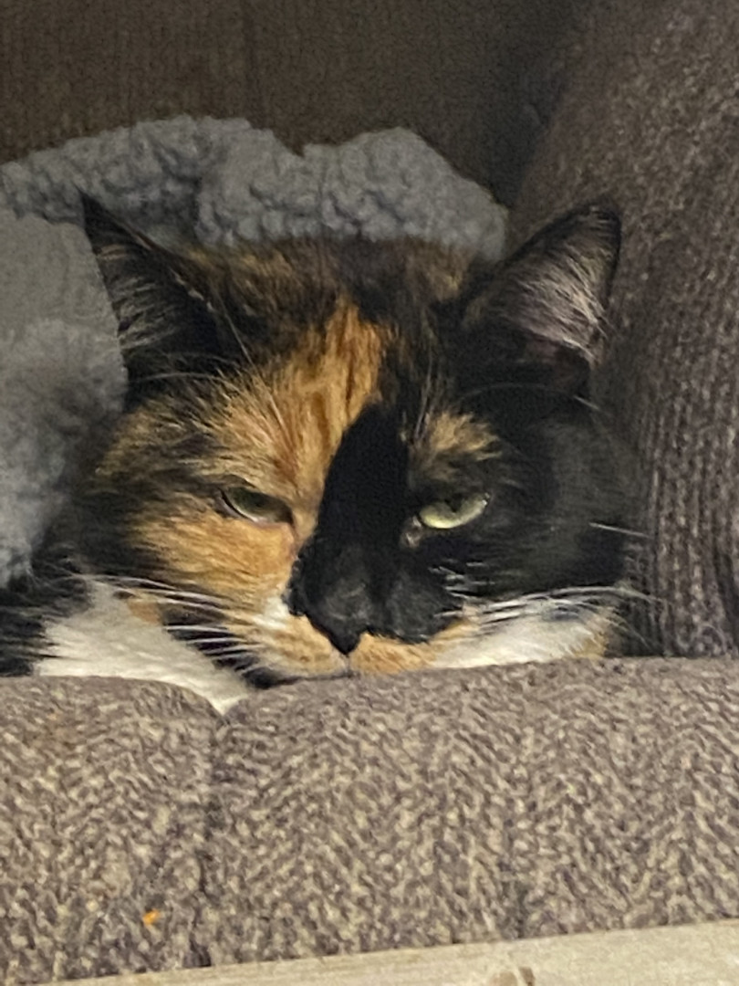 She’s a sweet pretty girl who will sit with me all day when my lupus flares. She loves people and doing silly goofy things like rolling in my bathroom chair. She’s an all around good cat and very loving.