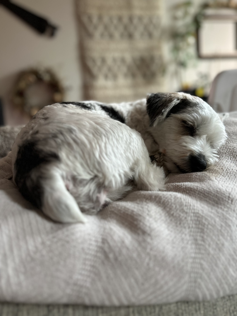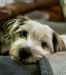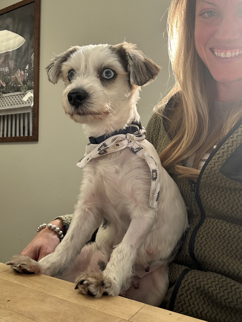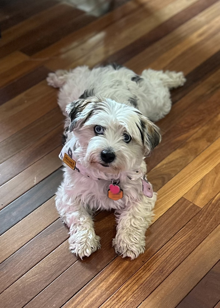 Her favorite toy is mini tennis balls and her go-to treat are Greenies dental chews.