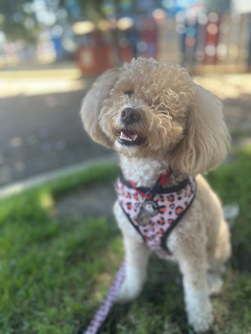 Lily is my tiny ball of sunshine wrapped in soft curls. She’s a miniature poodle with a heart far bigger than her size — sweet, playful, and