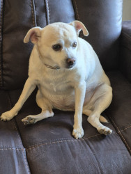 Her color-blending, along with her her beautiful, brown eyes. She's also kind of unique, because although she's part Chihuahua, her coloring is totally tan/white...no dark coloring at all.