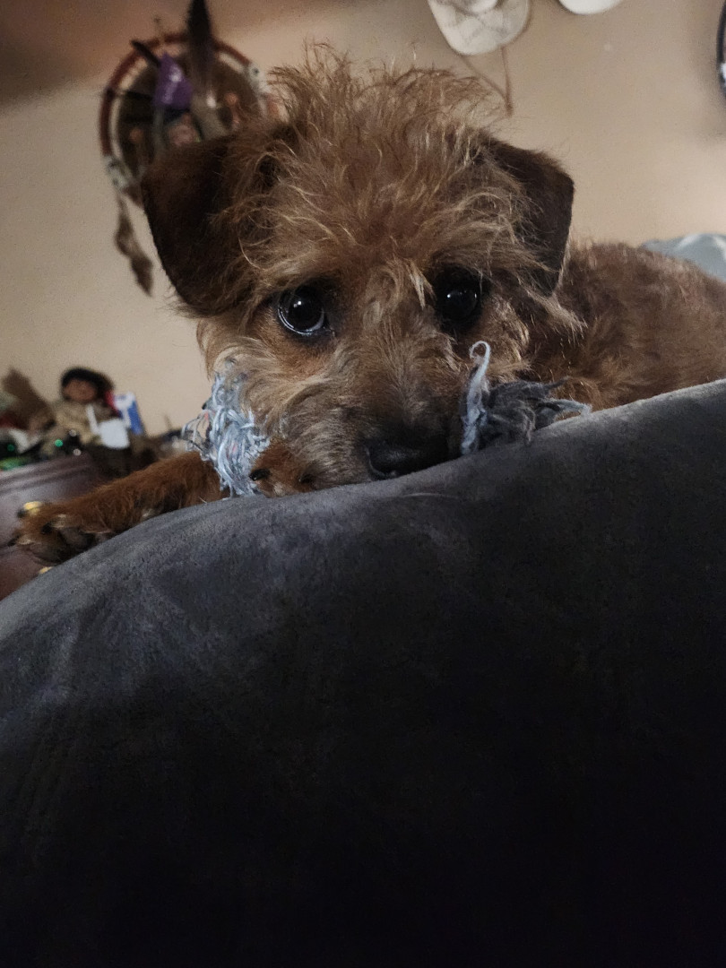 Lily Ana is a jug-a-poo. She is 3 years old and loves doing zoomies and snuggles with Mommy and Daddy. Loves playing with her toys.