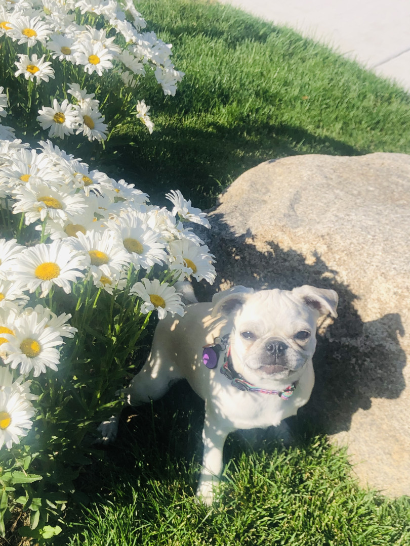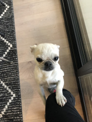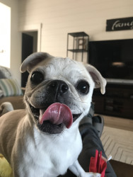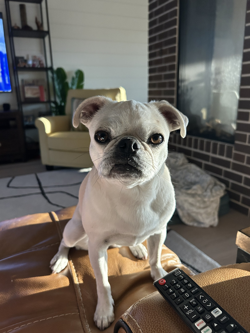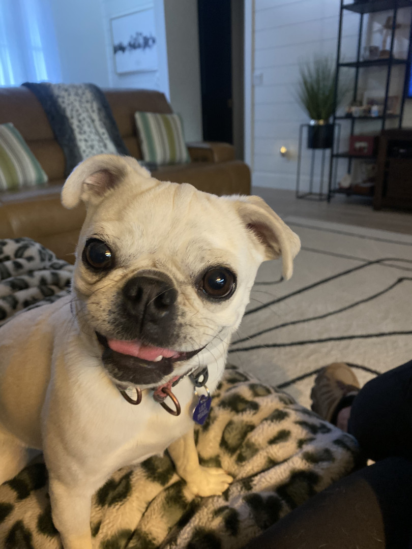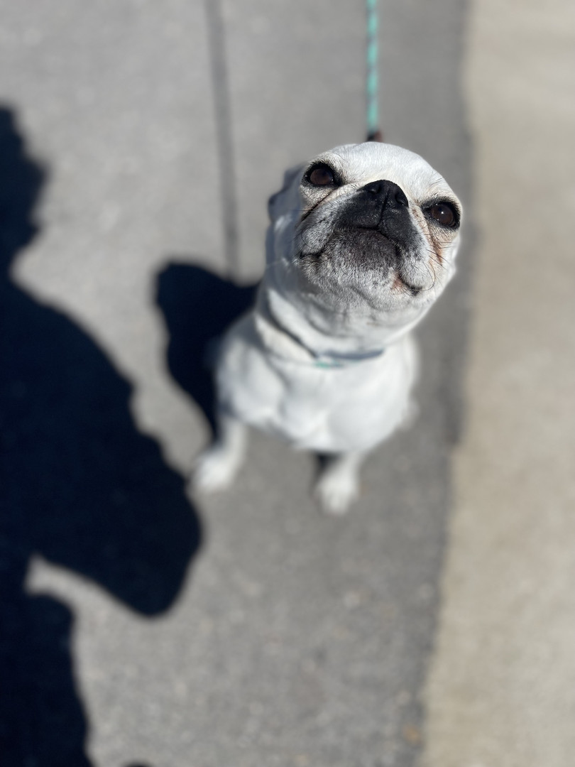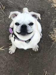 Lily Pearl is a white 14 lb pug with the intelligence of a German Shepherd, fetch/retrieval skills of a Lab and energy of a Jack Russell.