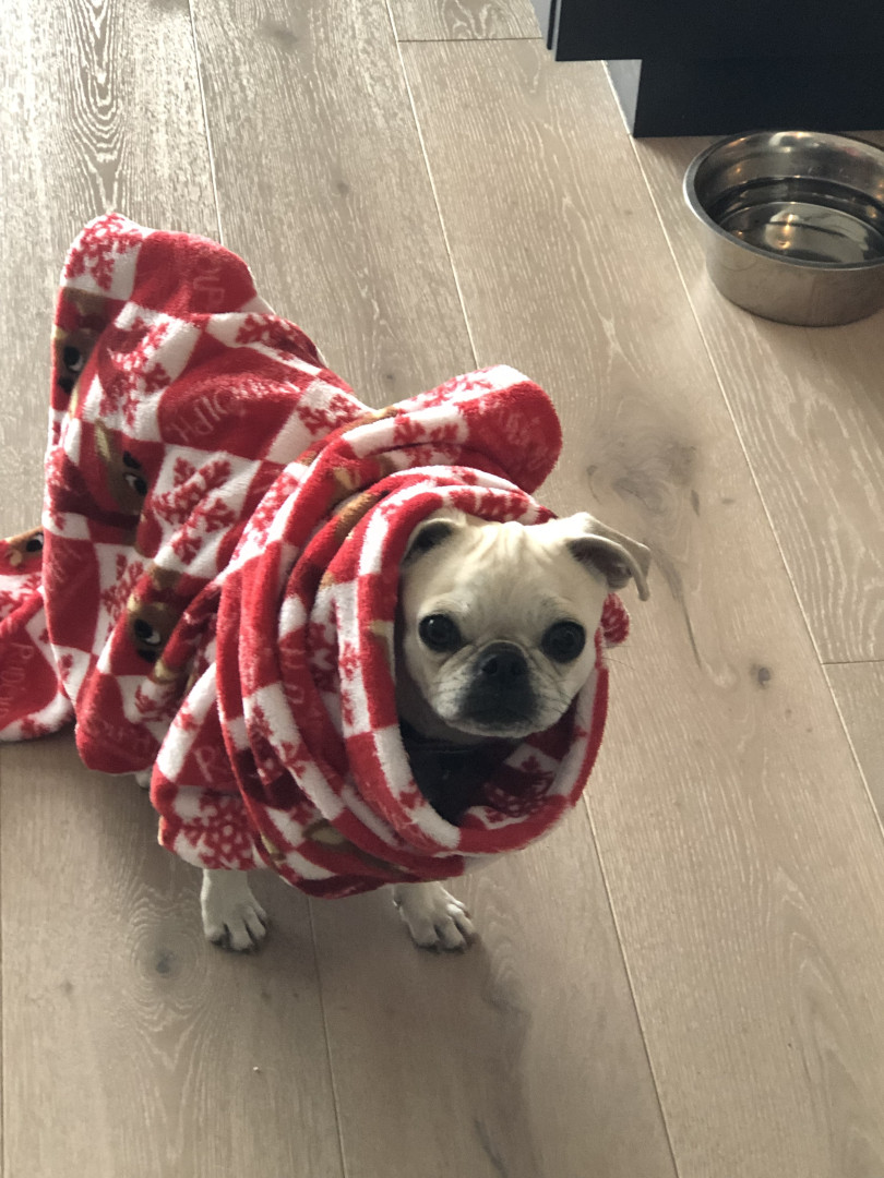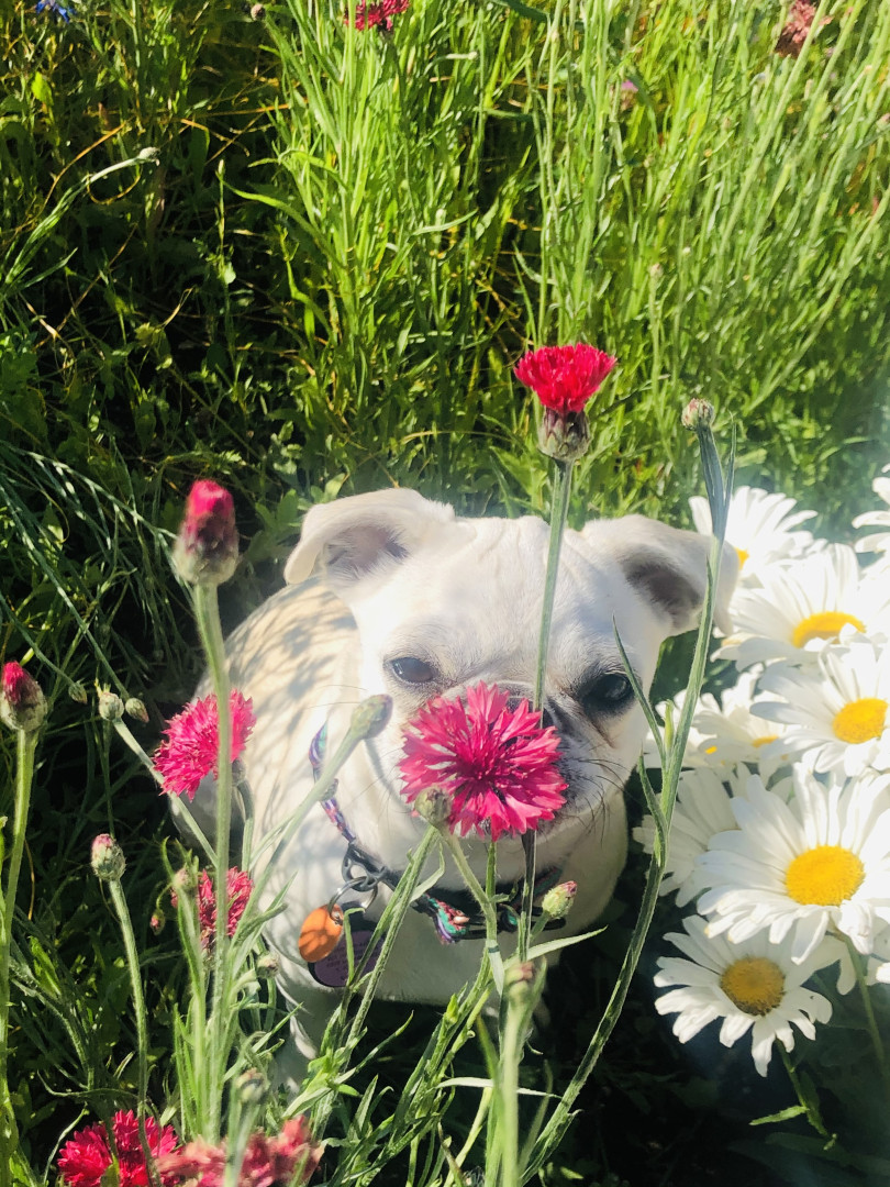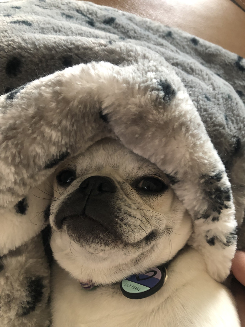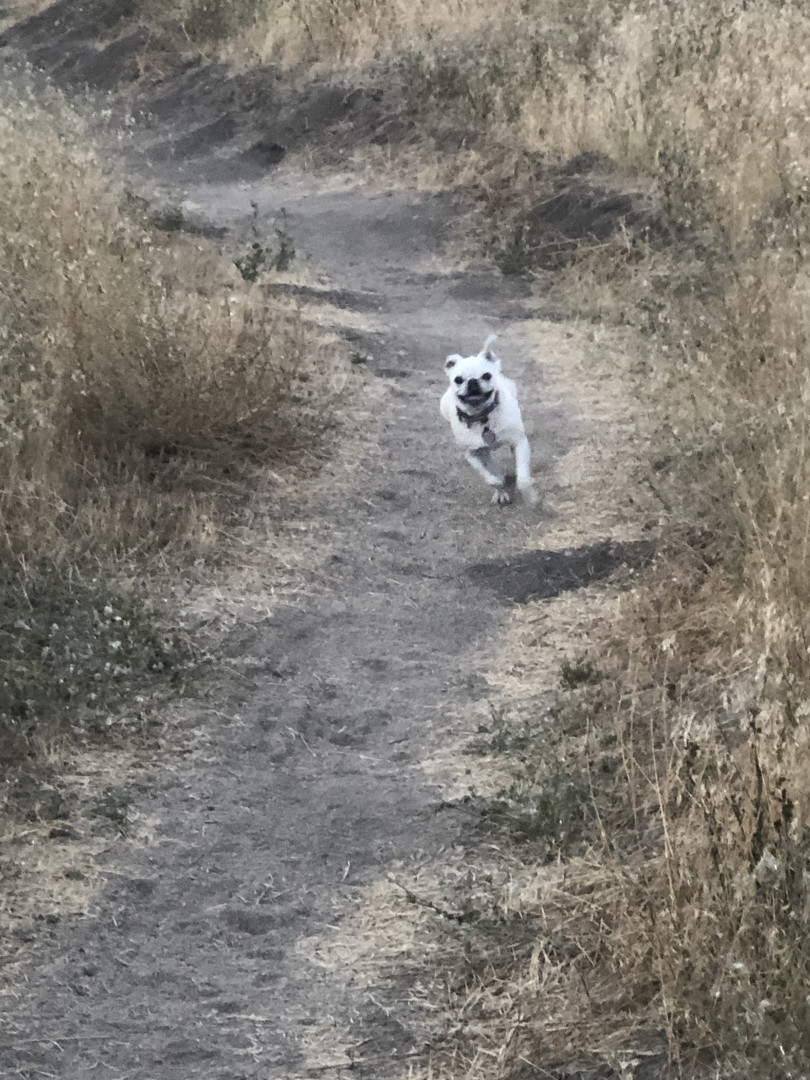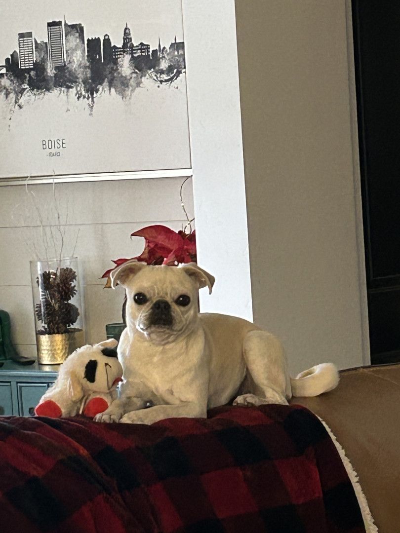 Lily Pearl is a white 14 lb pug with the intelligence of a German Shepherd, fetch/retrieval skills of a Lab and energy of a Jack Russell.