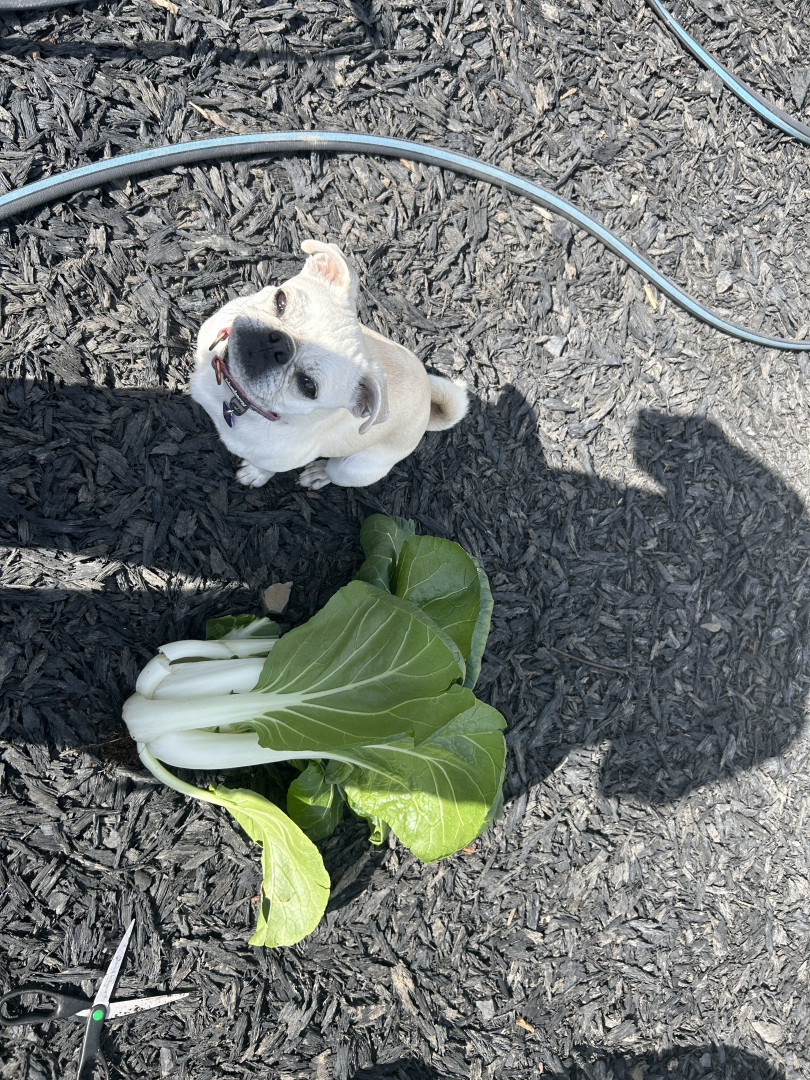 When I go to Home Depot with her she rides on the flat cart as I push her around the store. She loves Home Depot trips! The other thing that is unique, is she LOVES to eat my fruits and vegetables out of my garden, especially RAW asparagus! I have to put cages over them or she will eat them. Lastly, I can walk with her off leash, around other dogs and she will stay with me at my command.