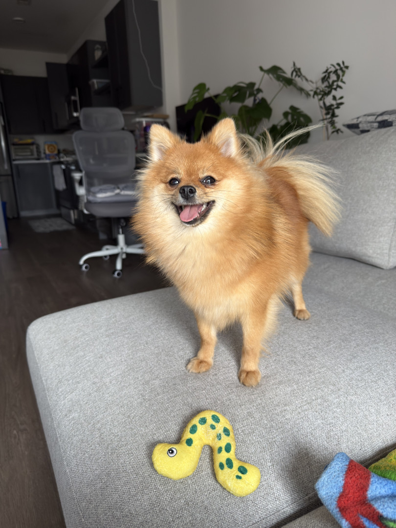 Lily is a playful and loving Pomeranian. She loves to play with her toys and enjoys kissing people