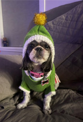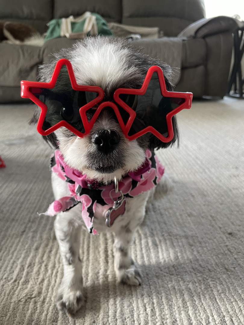 Lily is a rescue and is the laziest dog ever. She is also the sweetest and very grumpy when she’s tired. She LOVES her clothes though!!!