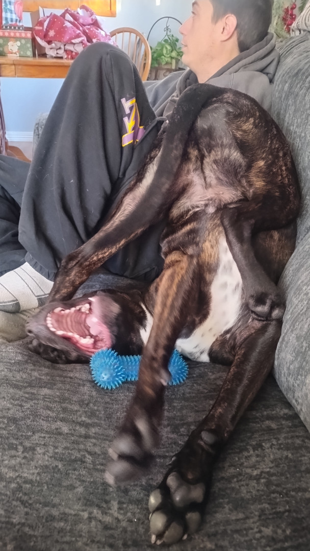 He is a rescue,going to be a big boy, he 9 months at 78 lbs..