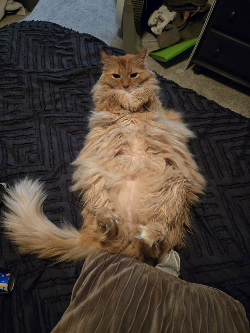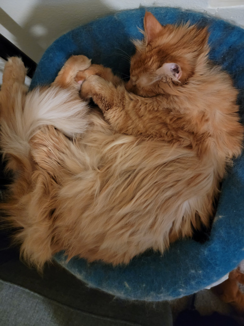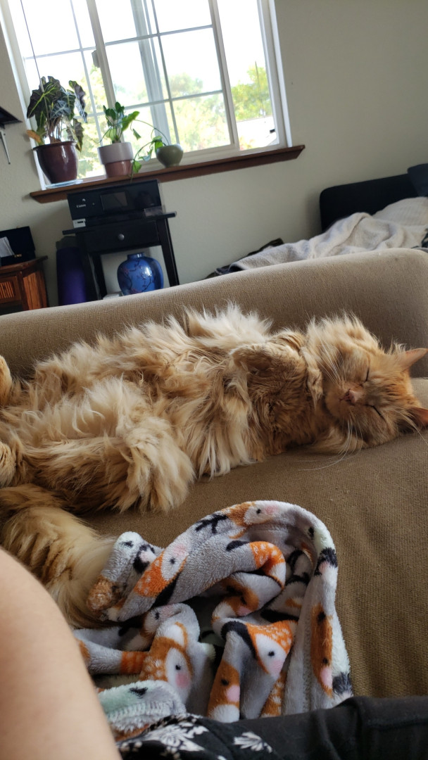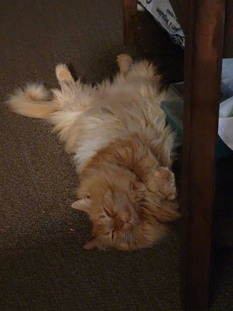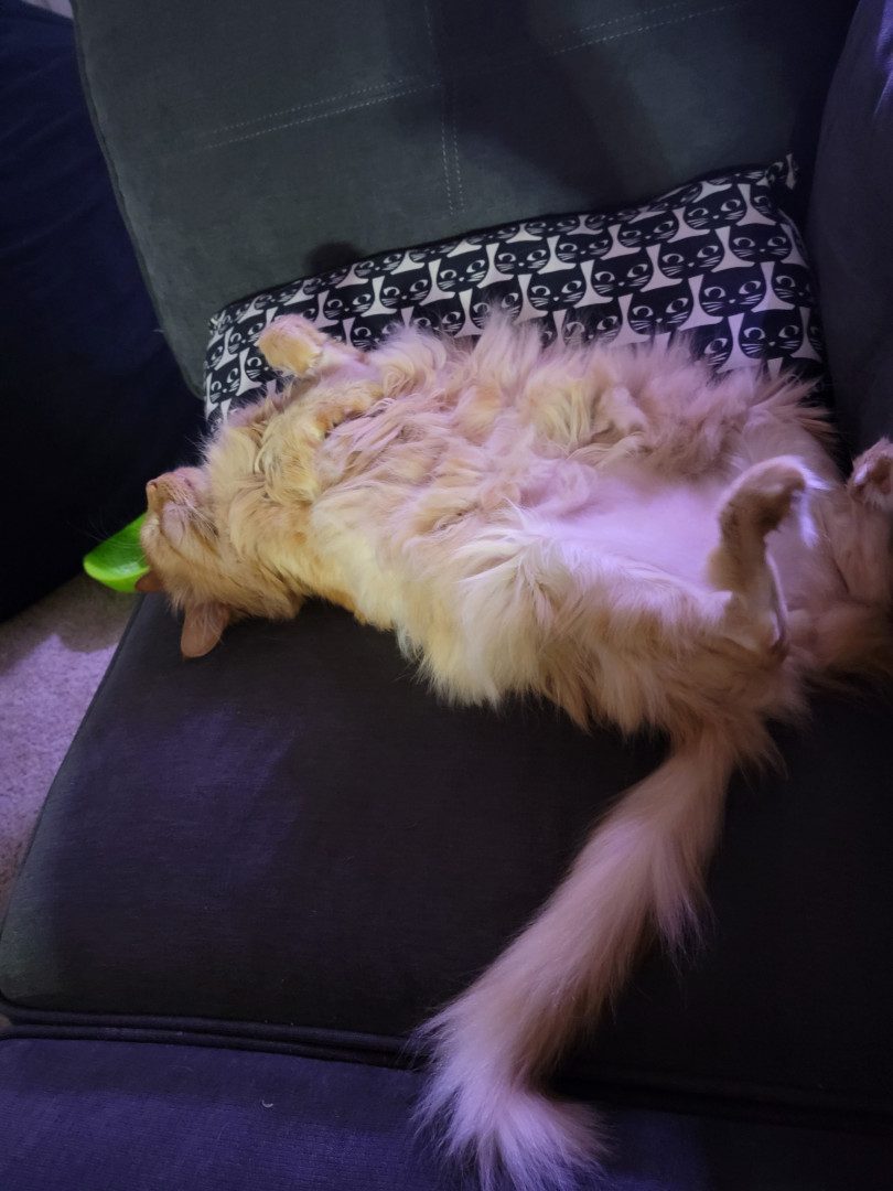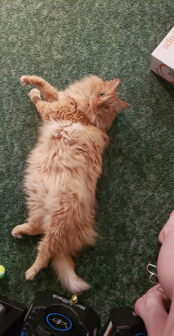 Link is a sassy orange fluff ball who loves attention and laying on his back, which we have deemed as "otter mode".