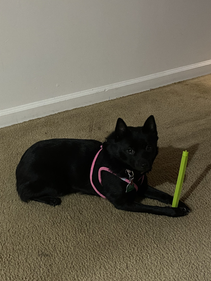 Little Bit is a three year old schipperke. She is a service dog in training.