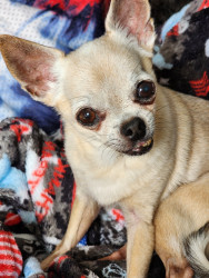She is a very loveable quiet chihuahua that loves us very much. Look at that face...who can resist. She is very unique in the fact that she never barks.