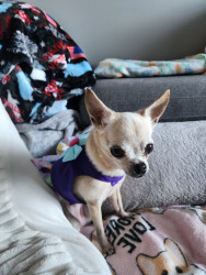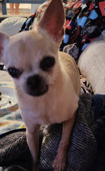 Little Girl is a 14 year Tiny Chihuahua with no teeth. She loves to cuddle next to us on the couch. She does like to sit on laps.