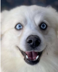 Little Boy’s most unique quality is the combination of his gentle spirit and his stunning icy blue eyes that stop people in their tracks. He was found along a country road with what were believed to be his siblings dirty, matted, and severely unsocialized. Today, he is living his best life! He’s the star of morning carpool drop-off, a daily walker to Grandma and Grandpa’s house, a sweet couch snuggle bug, and BFF to his big brother, Kumo the Great Pyrenees.