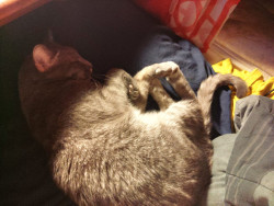 I wish more people understood that cats do care at their humans too. I've woken up at 2:00~ multiple times to find Annie sitting on my bed, contentedly purring to herself. Cats have a reputation for being uncaring and aloof, but that's just because people don't respect their boundaries and expect them to be a dog. Annie shows that cats can be as affectionate as any dog or human, while maintaining her own personality and individuality.