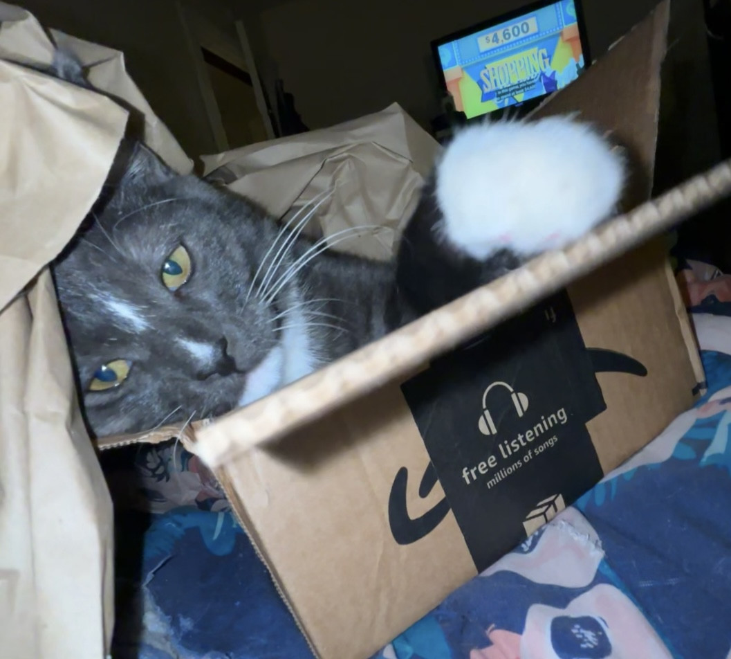 Learn MoreMy cats favorite “toy” is Amazon boxes to hide in… no seriously! Lol. His favorite go to treats consists of anything with meat.