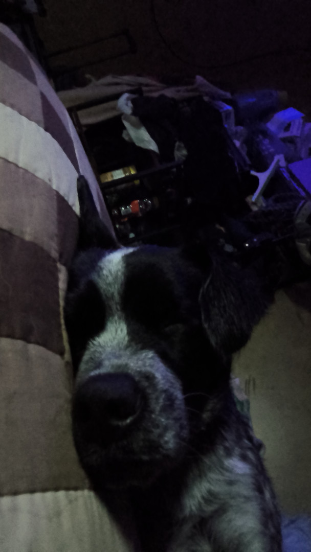 Cocker spaniel and blue healer mix, onry as can be very energetic and playful wants to learn all of the time