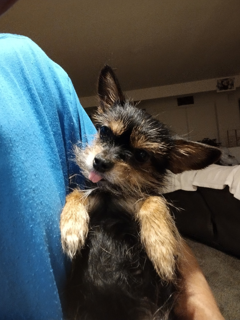 Little Bit is a rambunctious little spitfire and also the best cuddler.
