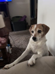 She is the most gorgeous doggie I’ve ever had! She’s a smart & witty Jackabee!🩷