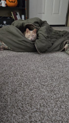 Loki plays fetch,leads his humans around the house like a dog, our morning alarm clock that will paw the blanket off in morning to let you know he is hungry and time to wake up,he loves to look at him self in the mirror. Loves climbing into bags and laundry baskets.