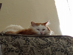 He's uniquely chaotic just like America. He loves his mama, he's gentle with everyone , although he's occasionally put in a headlock when his zoomies annoy his dad , he's patient with my son who's obsessed with his precious tail. He's our amazing little fluffernutter