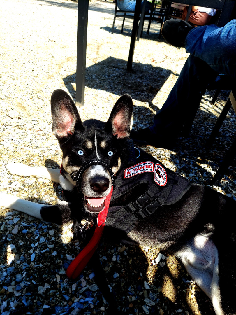 Loki’s most unique quality is the beautiful duality of his personality. When he’s working, he’s focused, calm, and intuitive as a service dog. Off duty, he’s goofy, affectionate, playful, and full of life—flipping a switch effortlessly between professional and pure joy.