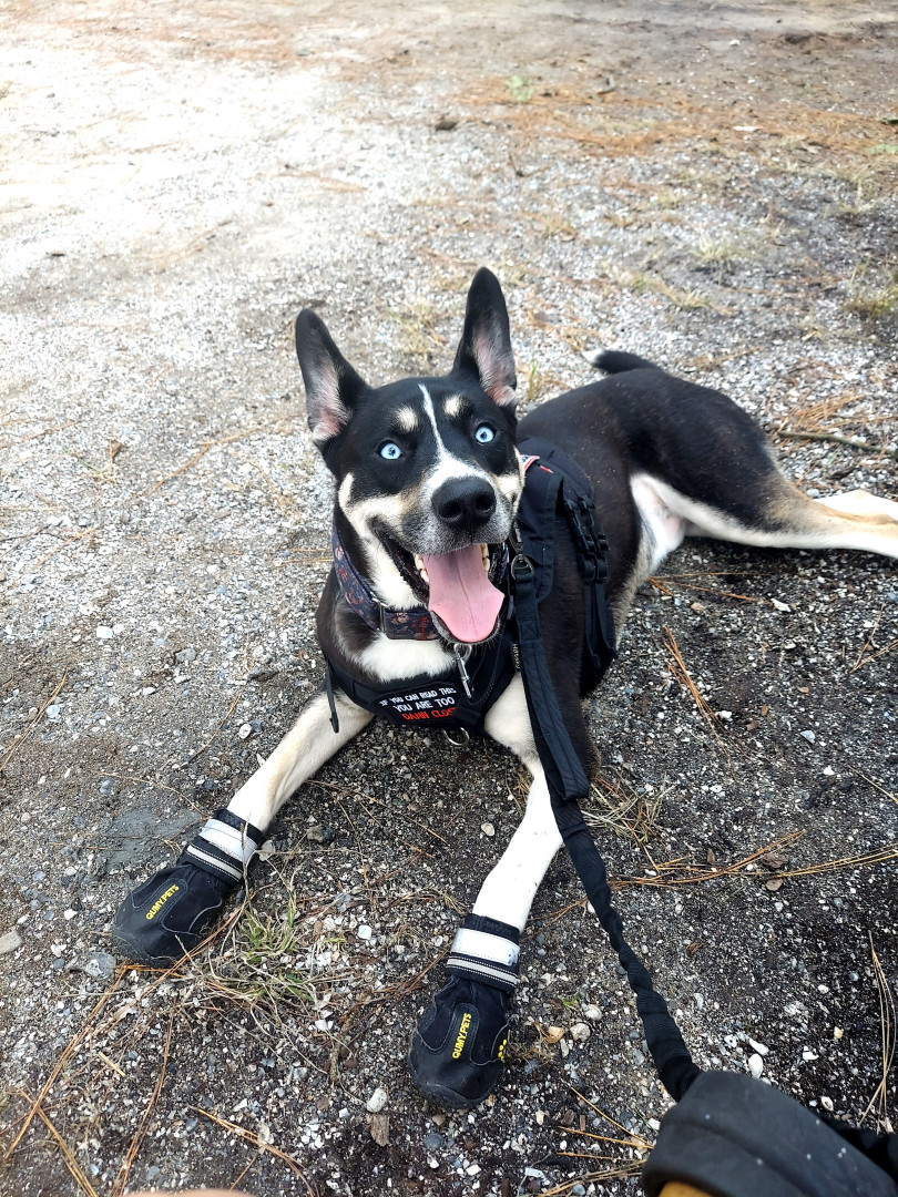 A loving, goofy Husky x Great Dane mix with a big heart, sharp smarts, and gentle soul—always ready to work, play, or cuddle.