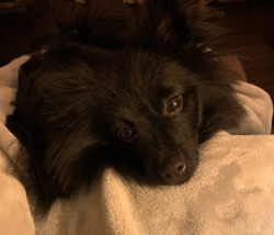 Loki is a young energetic Pomeranian. He’ll be two this January. He runs to me when someone comes to the door, protecting me i suppose.