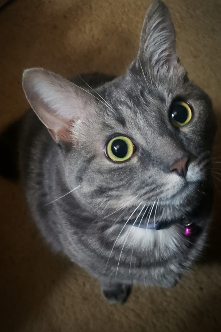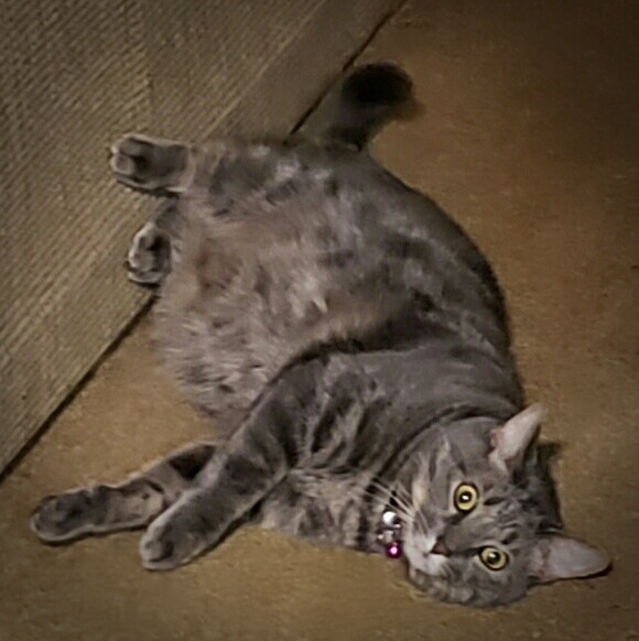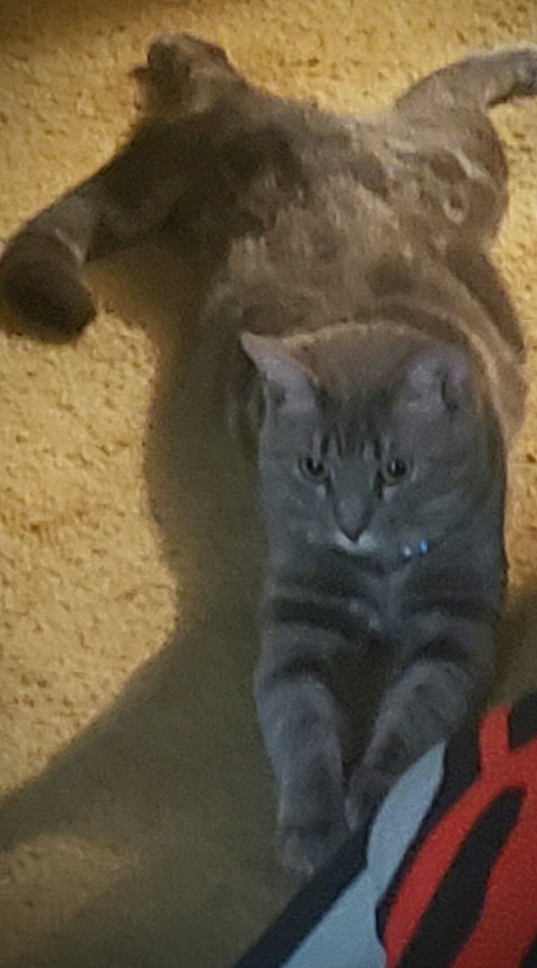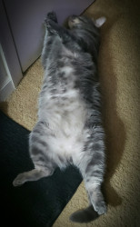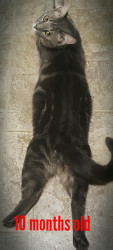 Loki is a very weird kitty he doesn't meow he has part mainecoon in him he just turned 2 in May n weighs in at 15.7lbs!! ❤️