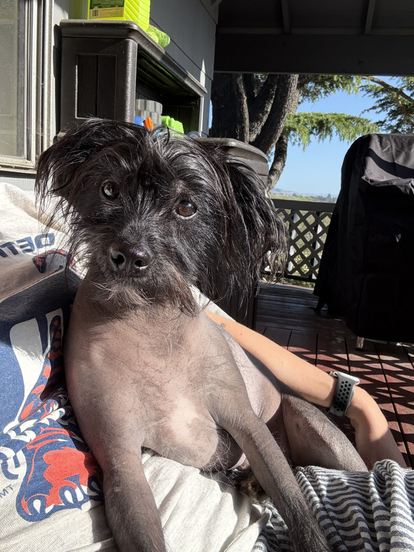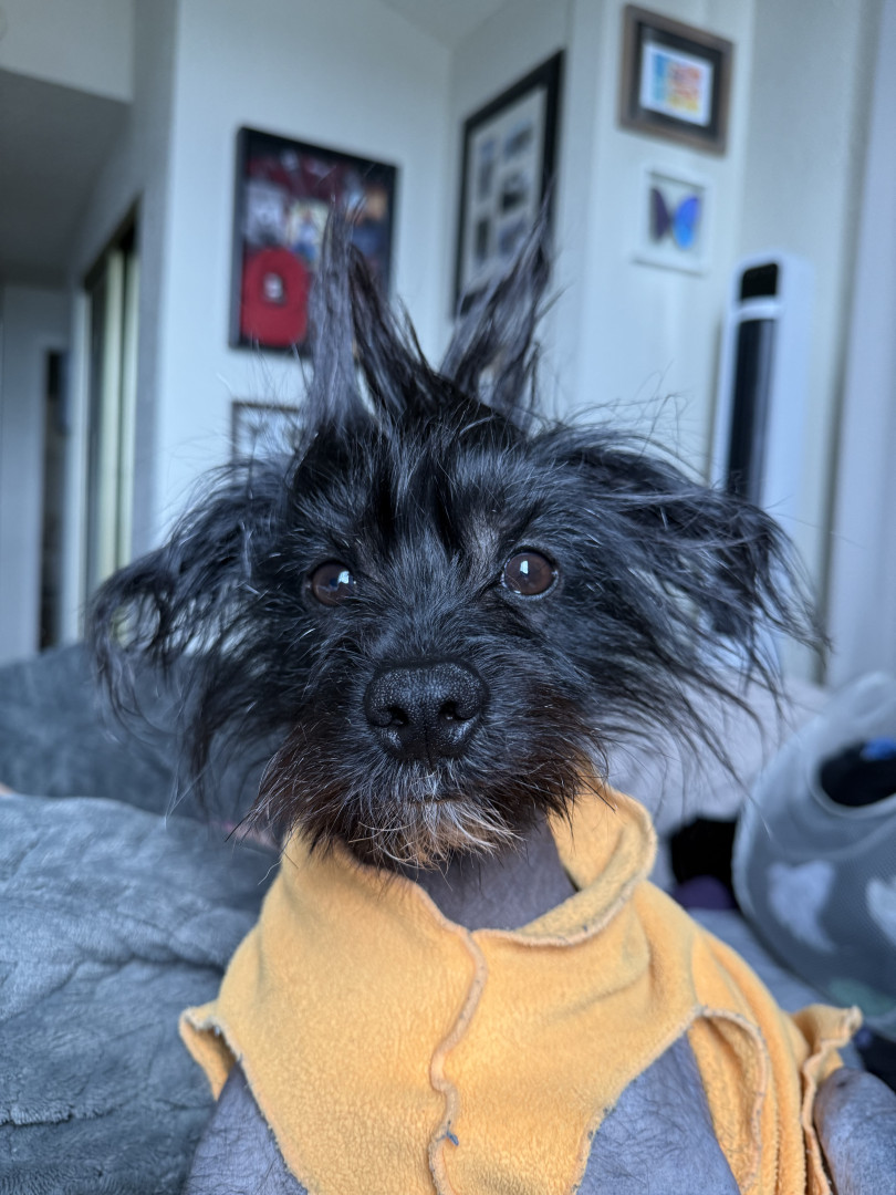 Loki has the best personality. He enjoys car rides, walks, adventures and snuggling . He uses his FluentPet buttons to communicate.