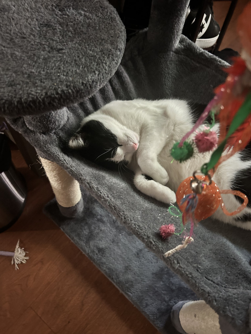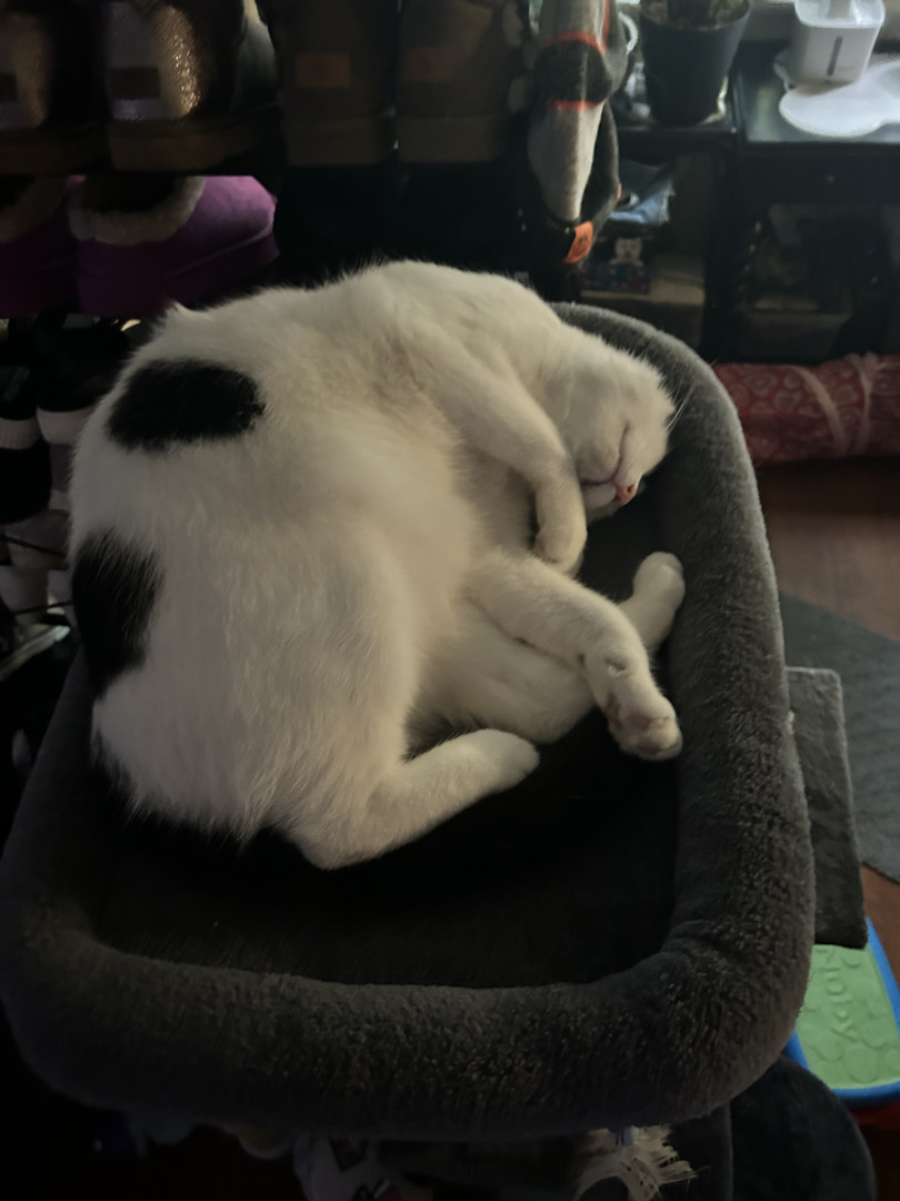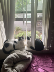 Loki is our 4 year old male all black cat. He is my Mr. Man. Angel and Freya are siblings and absolute lovers.
