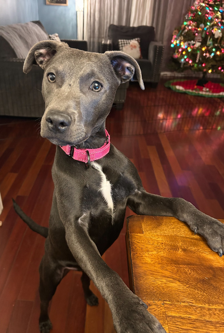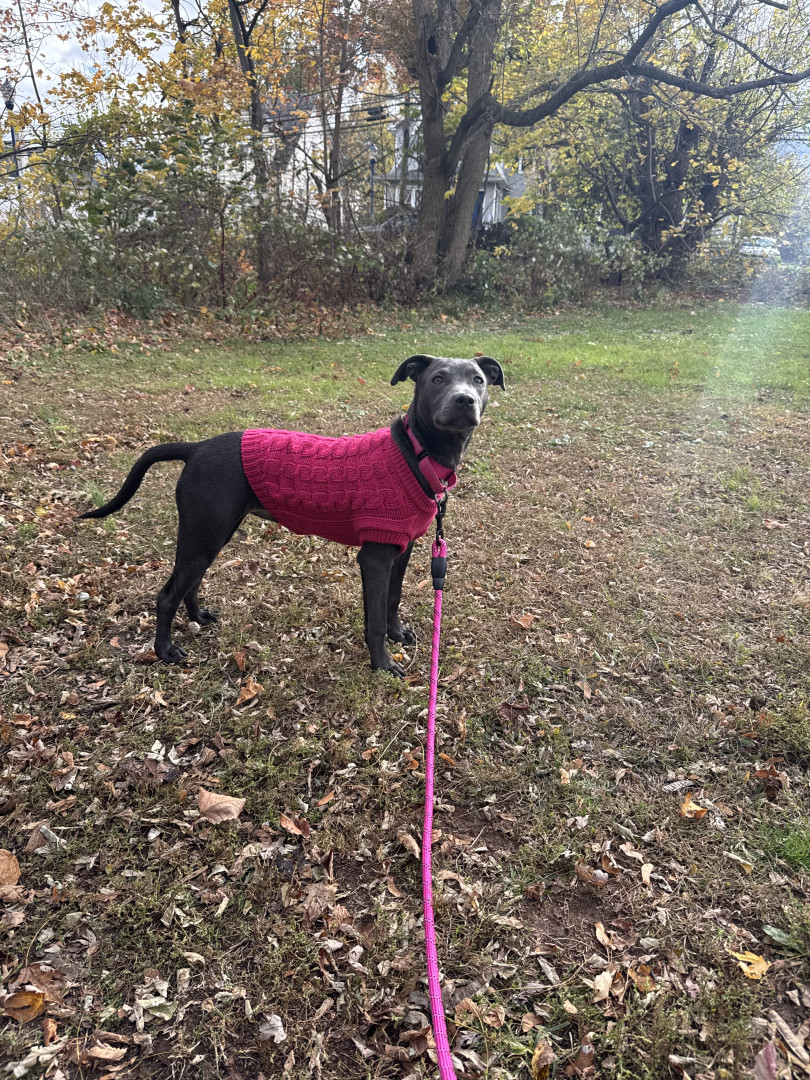 She’s a true resilience story. Rescued from the streets of Puerto Rico and brought to NJ, she arrived as a tiny, timid six‑month‑old foster. Within hours, her gentle, loving personality shone through. She’s trusting, playful, funny, and—though small—absolutely mighty. Everywhere we go, people fall in love with her, and every vet who meets her tells me the same thing: they’d have become a foster failure too. She’s the sweetest little girl