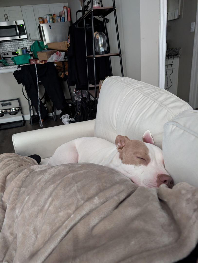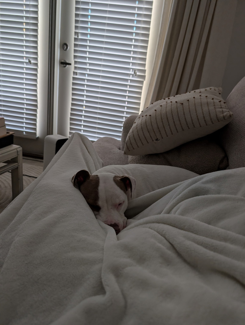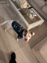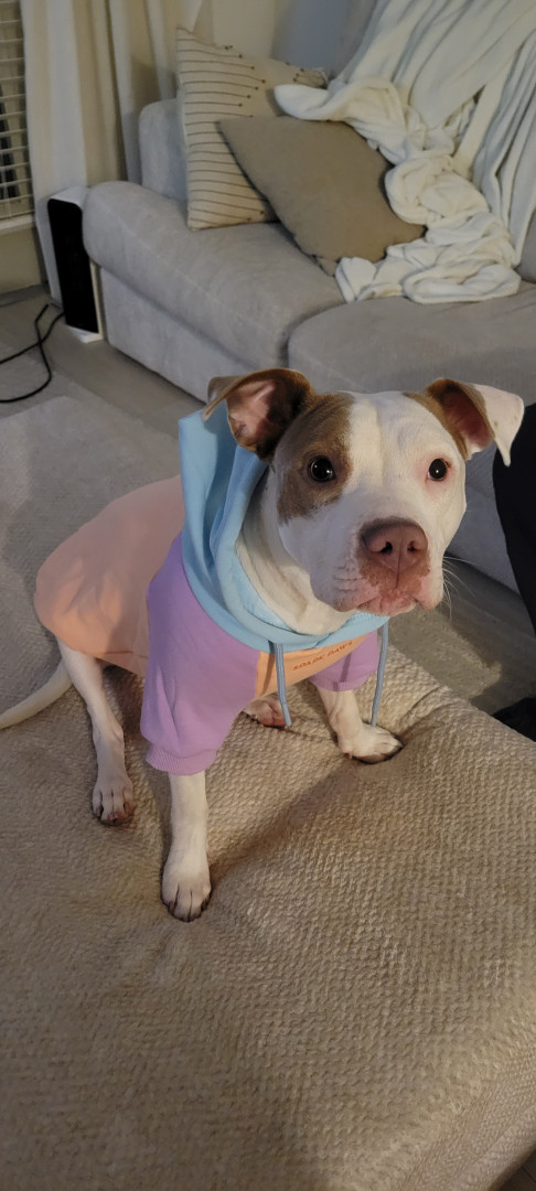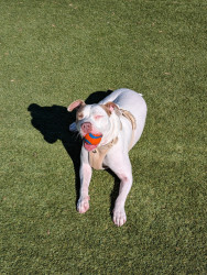 Lola is a bubbly sweet pup. She loves people and playing with other dogs. She enjoys being up under her parents and watching Netflix!