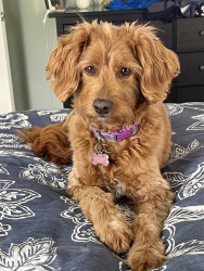 Lola is 10 years old and daily people ask us how old our puppy is! She is a golden doodle, golden mix. 24 pounds. Loves her daddy.