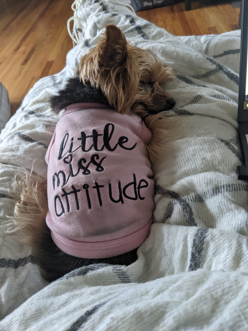 Some say bossy, we say persistent. Sassy-pants. Gets what she wants (IT ALL). She IS the treat. PhD in Face Licking, Certified Lap Warmer™️