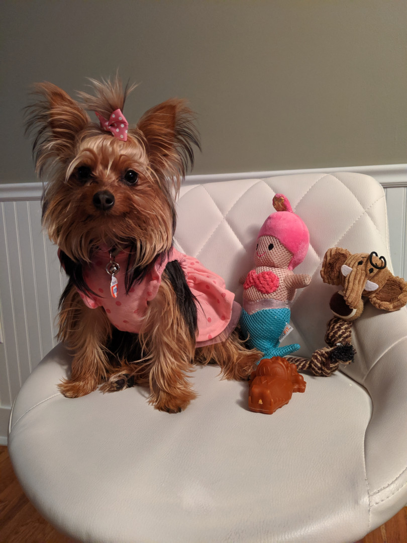 Learn MoreLola is very protective over and still obsessed with Lamby, a stuffed lamb that was her first ever toy! When we adopted her at 3 months it was the only toy she came with and now at 7 it's still her comfort toy. Lola will never turn down a Greenie or Milk Bone. She's actually quite choosy when it comes to her treats. If you offer her something she doesn't want, she will literally turn her nose up at it until you give up the goods.
