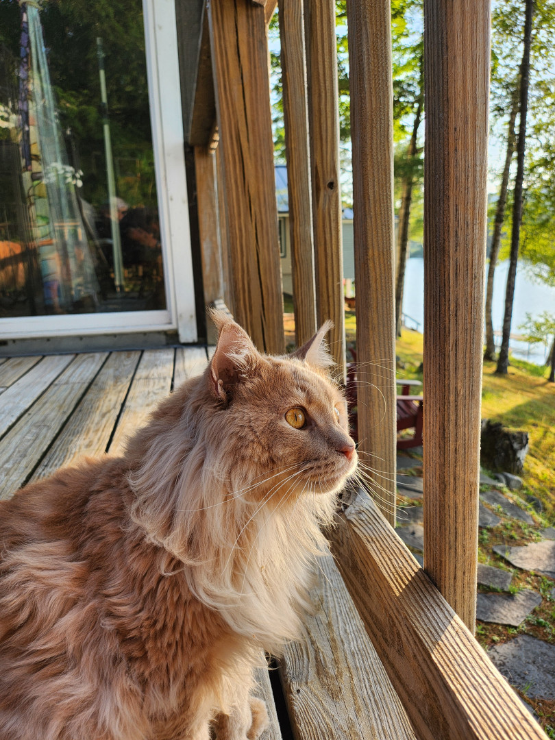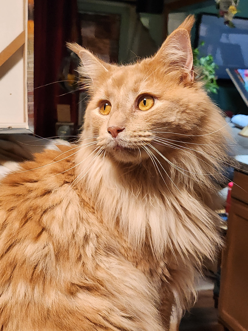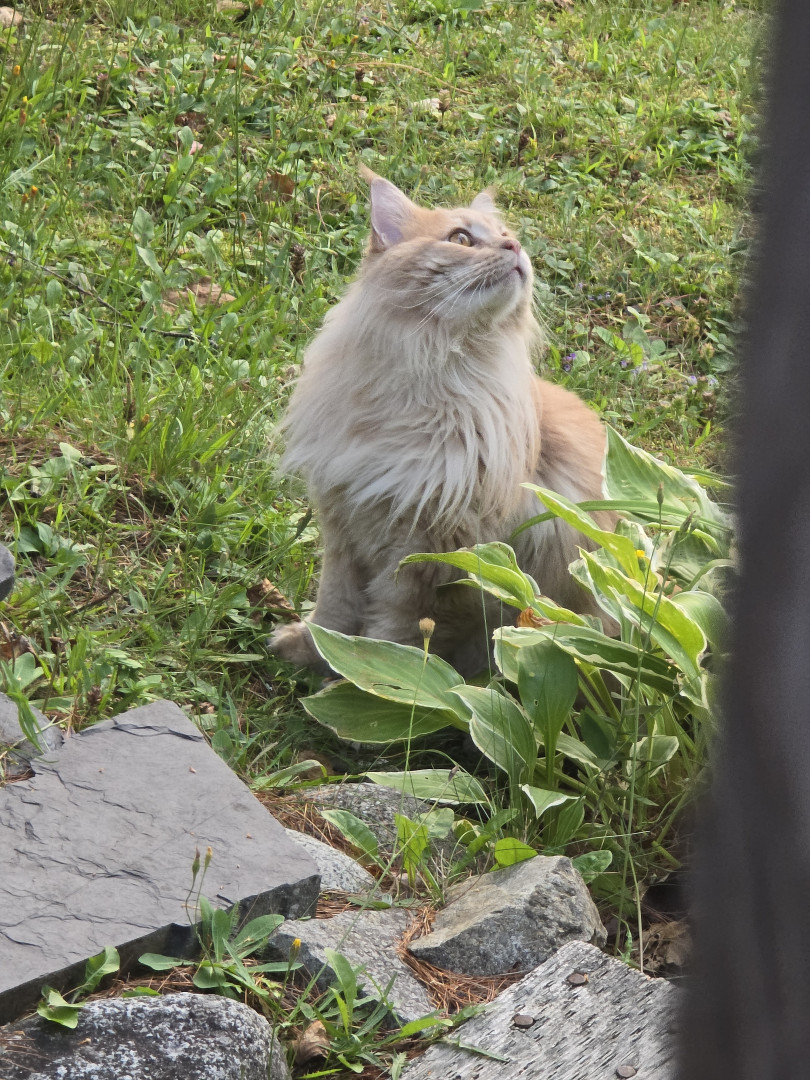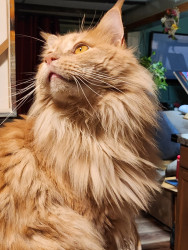 Ghinleigh rules the household. But we don't let him know that! He's our Maine Coon cat and his grandfather weighted 26 lbs. He's