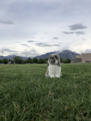 Lem is a fully litter box trained, free roaming bun, that is ALSO command trained & goes outdoors on adventures without leash. Puppy/Cat!