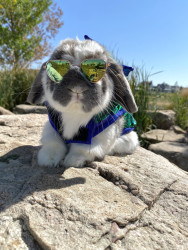 Lord Lemon is extremely unique, as he is the ONLY bunny in the world that is command trained and can go exploring outdoors OFF LEASH.