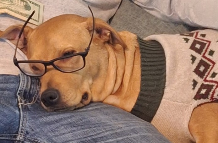 Lorelai's most unique quality is her excitement when she gets a big chew bone. She jumps up and down like a puppy then runs to her spot in the living room to eat her bone.